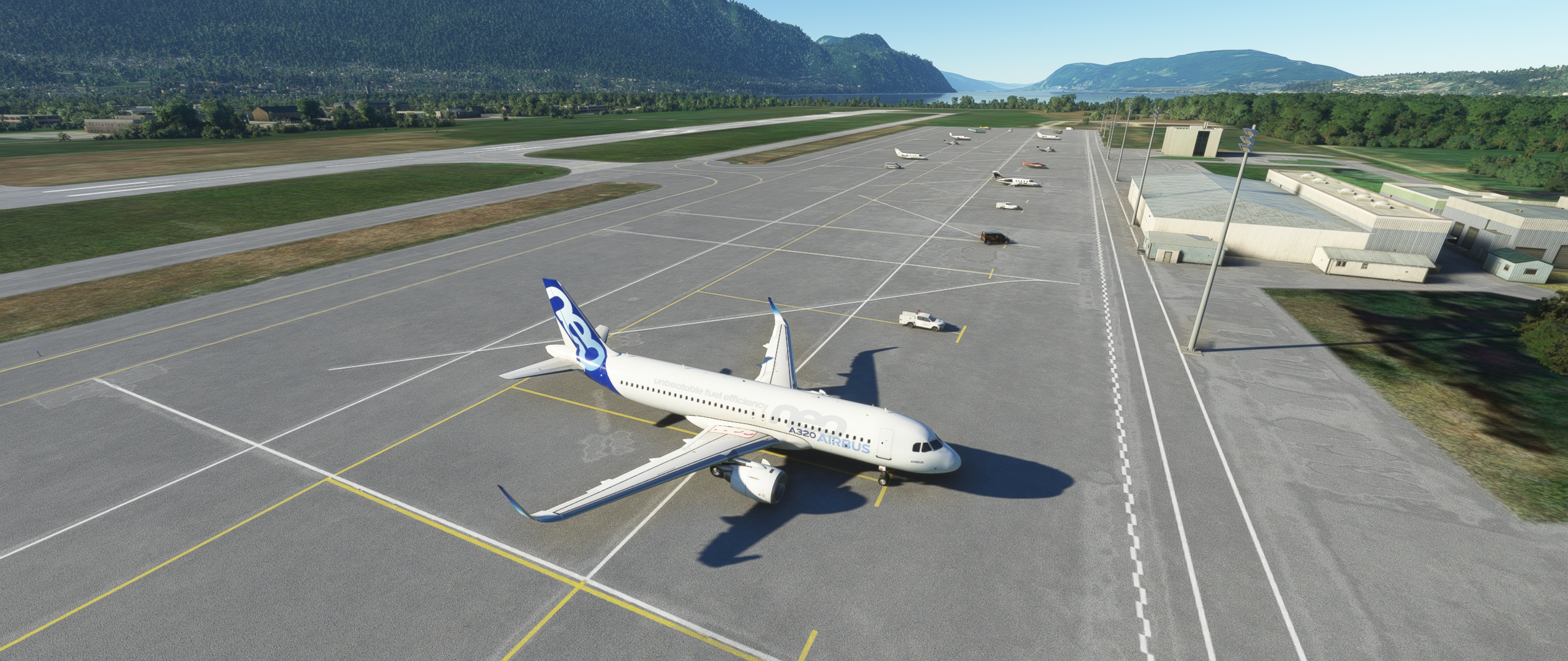 Die Piste misst 2020m und ist von hohen Bergen umgeben. Dementsprechend wird überlicherweise auf der 18 gelandet. Insgesamt ist es ein Airport, der im operativen Betrieb nicht unbedingt als "pflegeleicht" bezeichnet werden kann. Für unseren virtuellen Flug ist das gut, denn Andreas forderte ein Highlight. Und wer bei mir Highlights bestellt, bekommt auch welche.